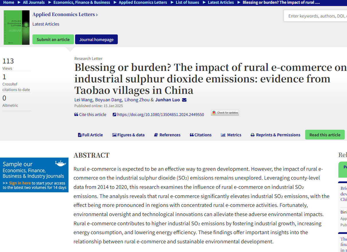 Blessing or burden The impact of rural e-commerce on industrial sulphur dioxide emissions evidence from Taobao villages in China