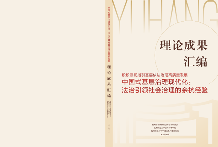 近日,杭州师范大学中国式现代化研究院团队在余杭区委宣传部(区社科联)委托支持下,完成理论成果汇编(论文集)《中国式基层治理现代化:法治引领社会治理的余杭经验》。该汇编围绕余杭基层治理实践,聚焦“在法治轨道上解决基层矛盾和问题”的治理命题,系统梳理“中国式基层治理现代化”的思想脉络、制度逻辑与实践路径,推动余杭经验的学理化提炼与可传播表达。